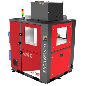 Two or optionally three sonotrodes installed in the process water basin enable the processing of complex components with different sonotrodes in one set-up. By arranging the sonotrodes at different angles, the A25 S impresses with its high degree of flexibility. The system enables unmanned production with up to 6 automatic drawers (optional)